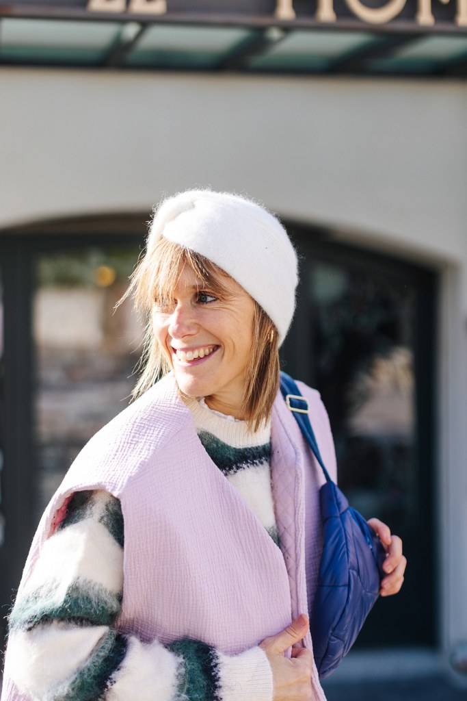 Matière/ coloris : bleu matelassé (doudoune) doublure en double gaze de coton