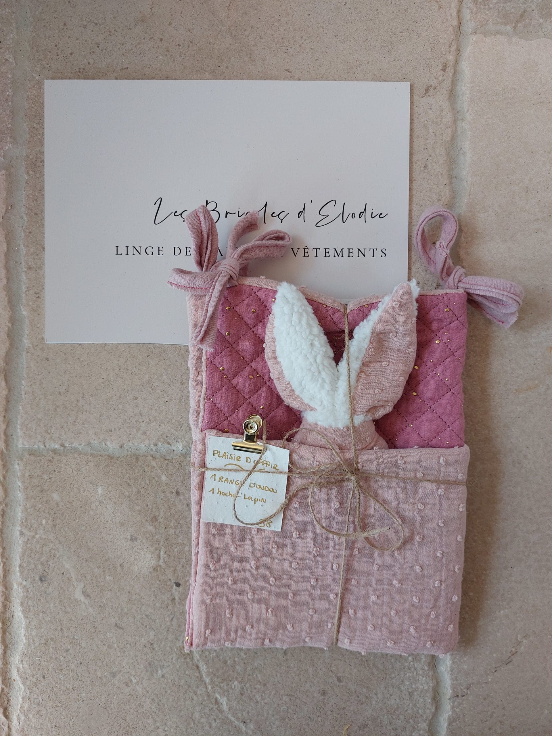 • Contient 1 porte doudou + 1 hochet lapin