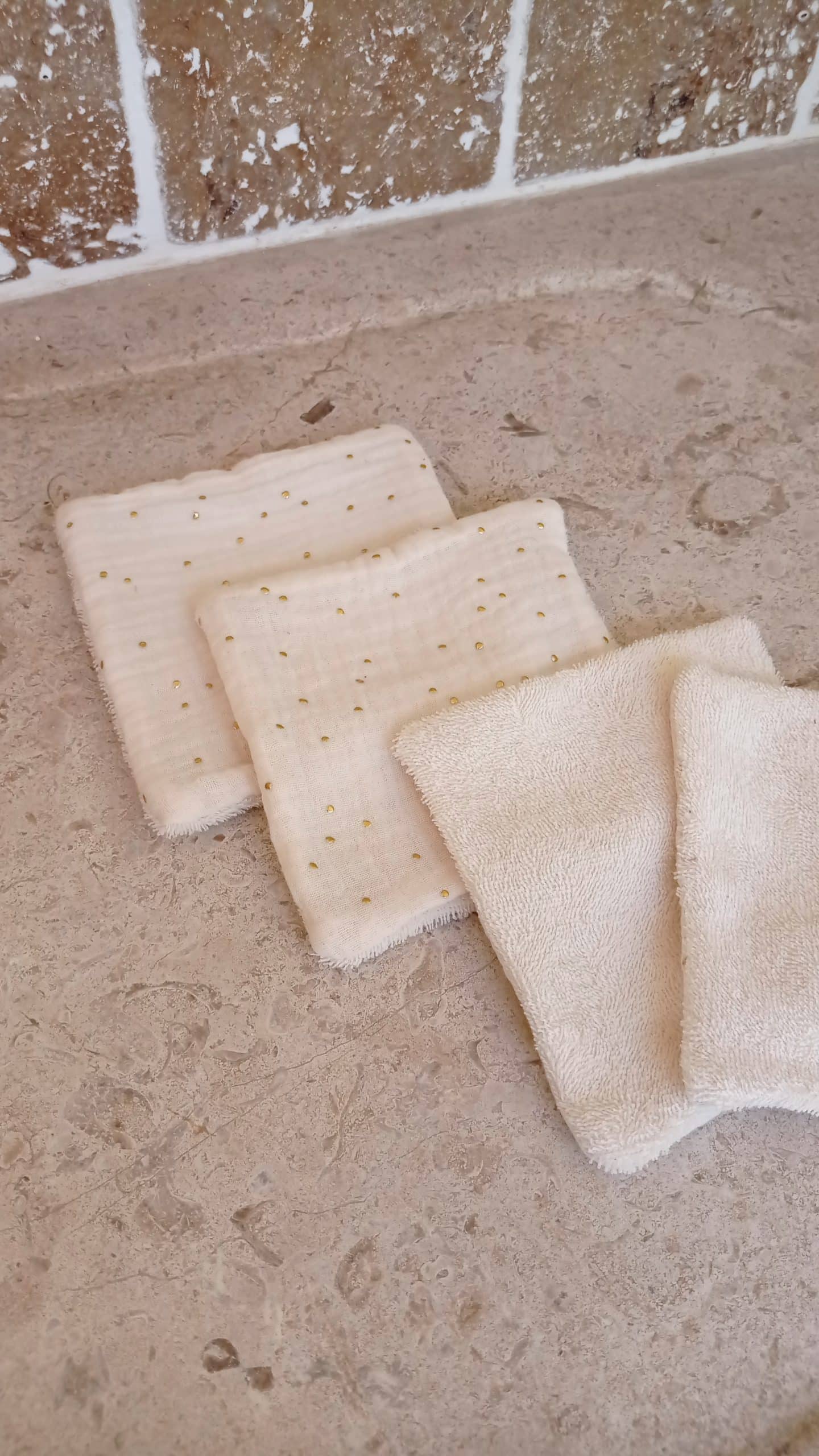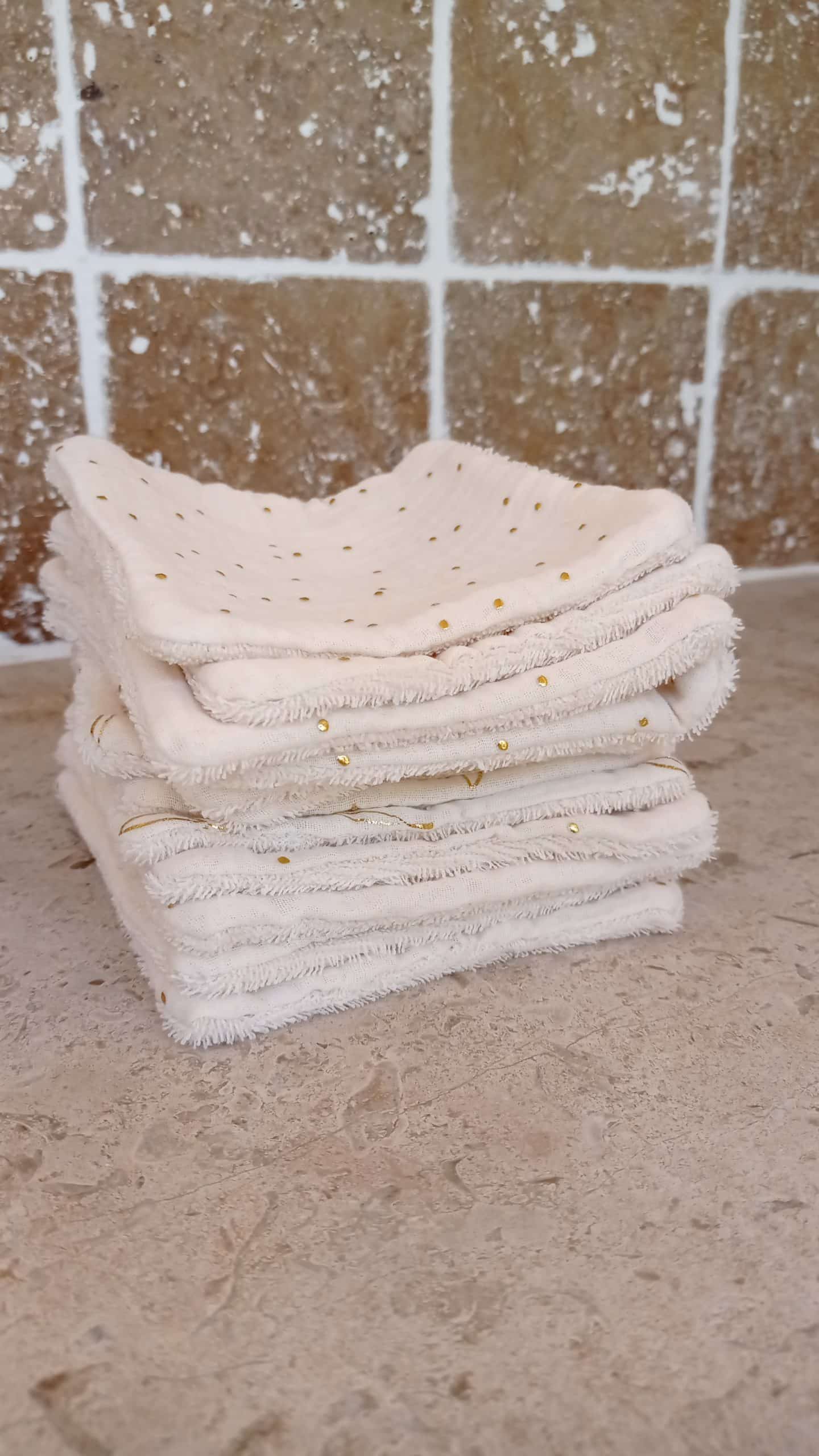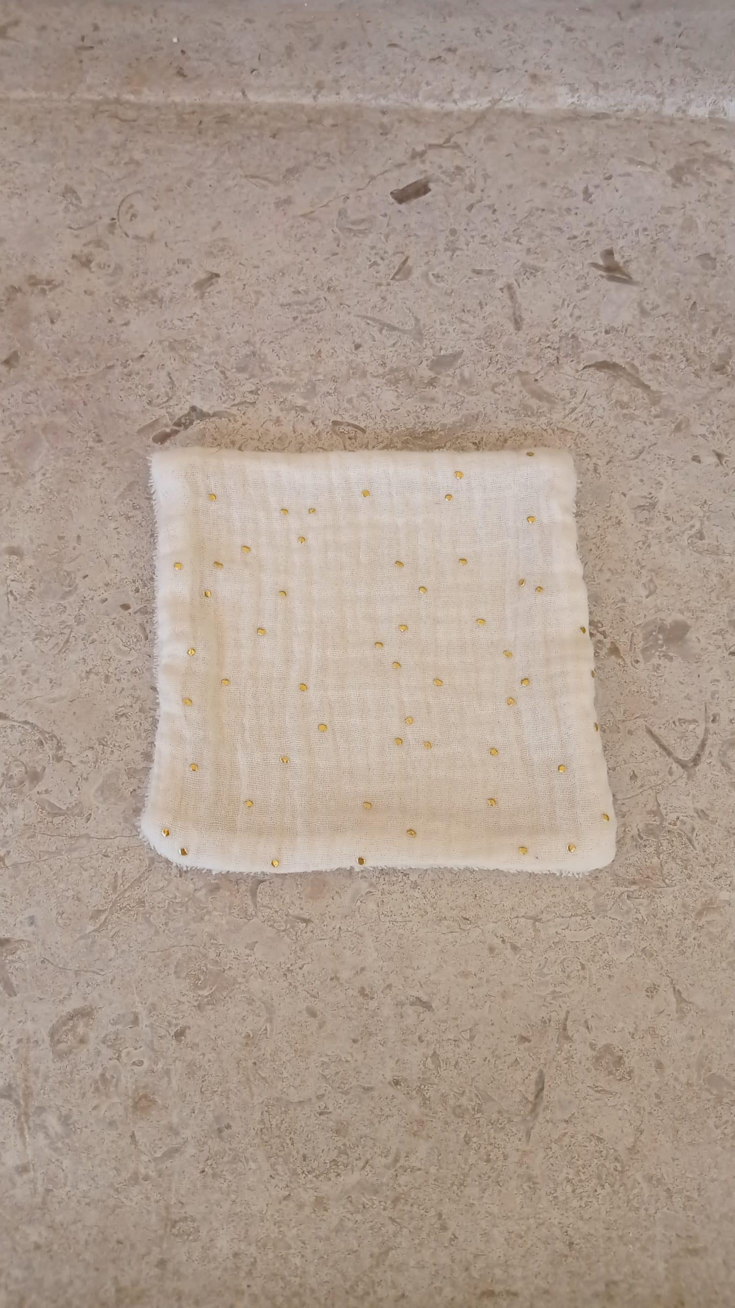 Serviette visage doublée « S » – écru pois dorés